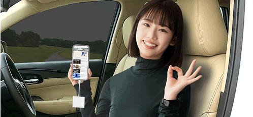 車両の大画面で楽しめる。