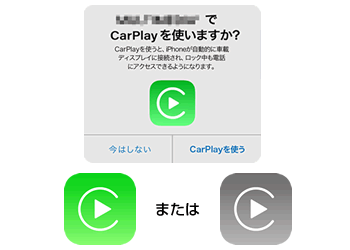 Apple CarPlayアイコンが表示されない場合は、Apple CarPlay機能搭載の有無を、お近くのカーディーラー様にご確認ください。