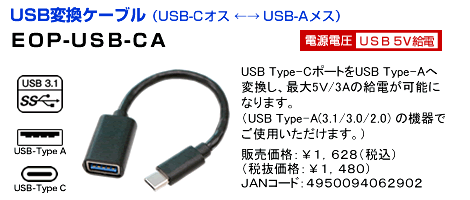 USB Type-A2.0(Type-C変換アダプター付属)