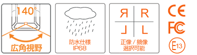 | 画角 | 水平:140°垂直:80° 対角:160° | ||||||||||||||||||||||||||||