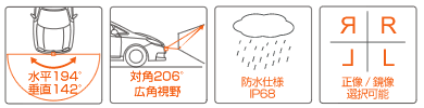 | 画角 | 水平:194°垂直:142° 対角:206° | ||||||||||||||||||||||||||||