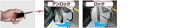 ドアロックでドアミラーを格納、アンロックでドアミラーを復帰します。
