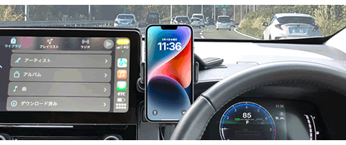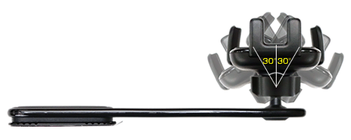 マウントとの接続はボールジョイント形状になっているのでマウントを車両に固定した後もホルダーは上下左右に各30°の範囲内で好きな角度に調整が可能。