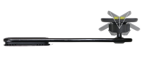 マウントとの接続はボールジョイント形状になっているのでマウントを車両に固定した後もホルダーは上下左右に各30°の範囲内で好きな角度に調整が可能。