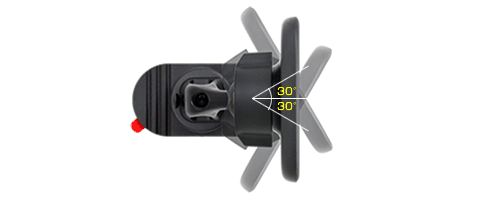 マウントとの接続はボールジョイント形状になっているのでマウントを車両に固定した後もホルダーは上下左右に各30°の範囲内で好きな角度に調整が可能。