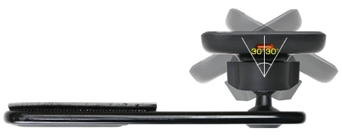 マウントとの接続はボールジョイント形状になっているのでマウントを車両に固定した後もホルダーは上下左右に各30°の範囲内で好きな角度に調整が可能。