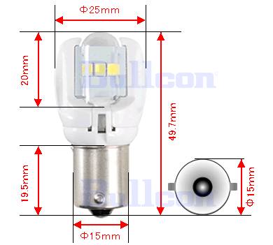 S25シングル球タイプ LUMILEDS LUXEON 2835 POWER LED 6500K +・-極性指定無し +9V~+16V 【12V車専用】 -40℃~+60℃ Φ25mm×49.7mm 約10000時間 PC・アルミニウム 200ルーメン(6LED) 160mA バックランプ・ウインカーランプ 4950094071133 |