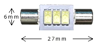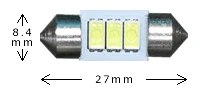 色温度:6000K SIZE:8.4mm×27mm (基板最大幅10mm) 定格電圧:12V~15V 消費電流:約57mA 希望小売価格:オープン JANコード:4950094070563 【3年保証】 |