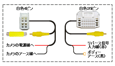 バックカメラ接続ハーネス●車両純正中継ハーネスを使用し、市販ナビゲーションと市販のバックカメラを接続する事が出来ます。