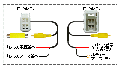 | ●車両純正中継ハーネスを使用し、市販ナビゲーションと市販のバックカメラを接続する事が出来ます。 |