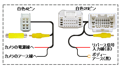 ●車両純正中継ハーネスを使用し、市販ナビゲーションと市販のバックカメラを接続する事が出来ます。