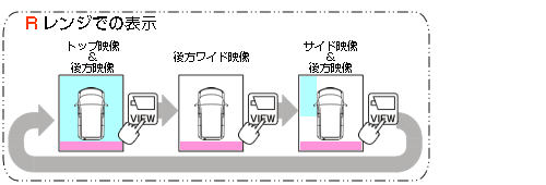 バック時は自動的に、バック時以外は車両のビュースイッチを押すとパノラミックビューモニター映像をナビゲーションへ表示します。