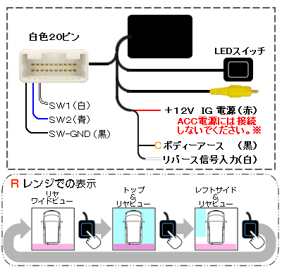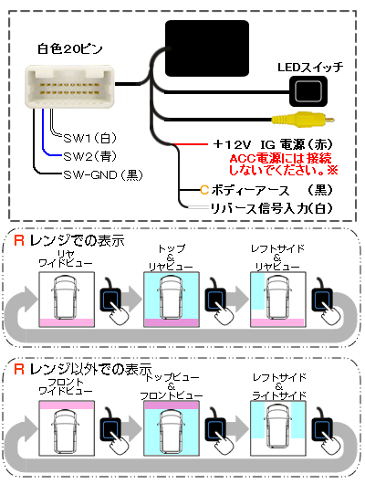 | ●純正ナビ装着用アップグレードパックのパノラマモニターカメラ映像を出力する事が出来ます。 | |||||||||||||||||||||||||||||