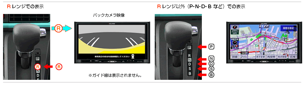 | (バック時は自動的に、リアビュー映像をナビゲーションへ表示します。) |