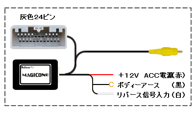 | ≪ご注意≫ ○一部車両で画面下部の映像が乱れて表示されますが、カメラの仕様によるものです。 ○市販ナビゲーション等にマジコネを用いてカメラ映像を表示すると「カメラ映像が暗い」「変色する」「映らない」といった症状が発生する場合があります。 この場合にはマジコネ映像増幅器 【AV-AMP01 (1,980 円税込)】を取り付けて頂く事で症状が改善されます。 |