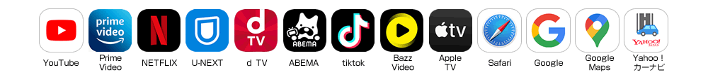 | ●当ウェブサイト内で提供されるすべての情報やカンパニーロゴ、商標、映像や画像などの著作(文書・写真・イラスト・動画・音声・ソフトウェア等)の著作権は、 当社または第三者が保有しており、著作権法その他の法律ならびに条約により保護されております。私的使用目的の複製、引用など著作権法上認められている範囲 を除き、著作権者の許諾なしに、これらの著作物を複製、翻案、公衆送信等することはできません。 また、当社ウェブサイトに掲載されている当社名称等のロゴは、当社の商標または登録商標です。 ●第三者に帰属する著作権保護対象物の取り扱い、及び使用に関しては、各権利の帰属先にお問合せ下さい。 ●掲載画像の著作権に関する権利者表記 ◆トヨタ・カローラ・カローラスポーツ・カローラツーリング・カローラクロス・カムリ・アルファード・ヴェルファイア・グランエース・ヤリス・ヤリスクロスは トヨタ自動車自動車株式会社の商標または登録商標です。 ◆Apple・iPad・Mac・iOS・Safari・AppleTVは、Apple Inc.の商標または登録商標です。 ◆iPhoneの商標は、アイホン株式会社のライセンスに基づき使用されています。 ◆ニンテンドー・ニンテンドースイッチ・Nintendo Switchは任天堂の商標または登録商標です。 ◆Google・GoogleMAP・Android・Chrome・ChromeCast・youtubeは、Google LLC.の商標または登録商標です。 ◆Amazon・FireTVstick・PrimeVideoはamazon Inc.の商標または登録商標です。 ◆NETFLIXはNETFLIX Inc.の商標または登録商標です。 ◆Bytedance・BuzzVideo・TikTokはBytedance Ltd.の商標または登録商標です。 ◆NTTdocomo・dTVは株式会社NTTdocomoの商標または登録商標です。 ◆AbemaTVは株式会社Abemaの商標または登録商標です。 ◆huluはHJホールディングス株式会社の商標または登録商標です。 ◆U-NEXTは株式会社U-NEXTの商標または登録商標です。 ◆Yahoo!・Yahoo JAPANはヤフー株式会社の商標または登録商標です。 ◆Wi-Fi・wi-fiはWi-Fi Allianceの商標または登録商標です。 ◆その他、本サイトに記載されている各会社名、各製品名及びサービス名などは各社の商標または登録商標です。 |