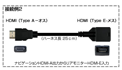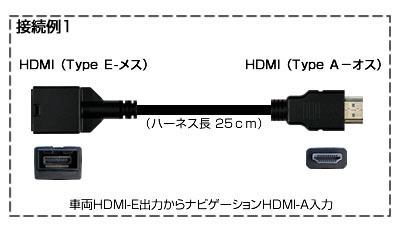 HDMIハーネス●【HDMIタイプE端子】機器と【HDMIタイプA端子】機器を接続できます。