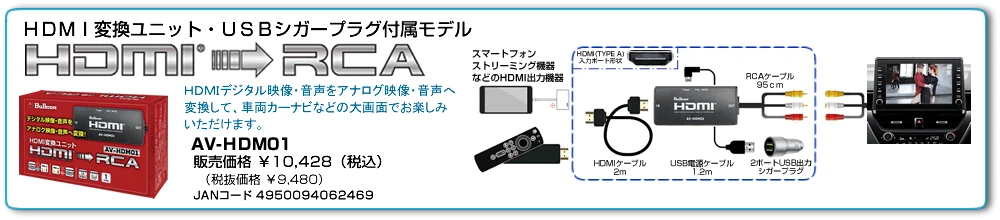 | ●ディスプレイオーディオに純正ディーラーオプションCD・DVDデッキが装着されている車両にRCA端子対応の外部入力機能を追加でき、 車内で動画等をお楽しみいただけます。 |