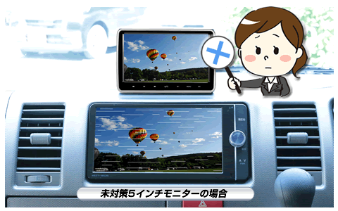 地デジチューナーやGPS受信等、車載機器への影響を最小限に抑えるノイズ対策により、多くの市販モニターで発生するノイズ問題をクリア。 |