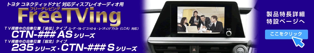 【フリーテレビング】は車両標準装着テレビ/メーカーオプションテレビ/ディーラーオプションテレビを走行中に視聴可能にするシステム、
