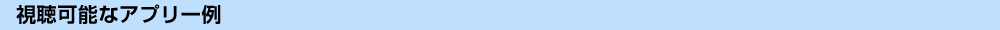 | ※上記アプリは2022年1月18日時点で弊社が動作確認を行ったアプリの一例です。 スマートフォン、ストリーミング機のOSやソフトバージョンおよびアプリのアップデートにより映像出力ができなくなる可能性があります。 最新情報は【iOSバージョン別アプリ対応表】をご確認ください。 最新のOSにバージョンアップできない機種(サポート対象外機種)については動作保証対象外となります。 ストリーミングデータの受信にはインターネットへの接続が必要です。また、通信費用はお客様のご負担となります。 アプリによっては契約が必要な場合があります。契約費用はお客様のご負担となります。 |
