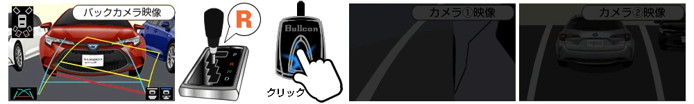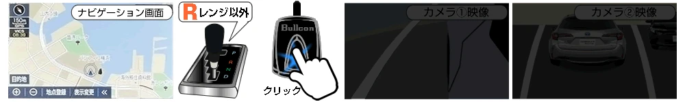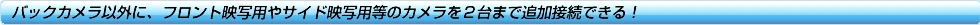 カメラセレクター●フロント/サイドカメラ等を追加しカメラ映像(バック/フロント/サイド)をディスプレイオーディオに表示する事ができます。