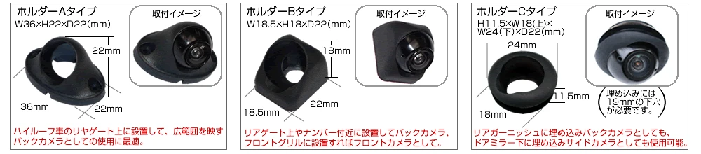 | (取り付けには車両側に直径19mmの穴を開ける必要があります。) | |||||||||||||||||||||||||||||