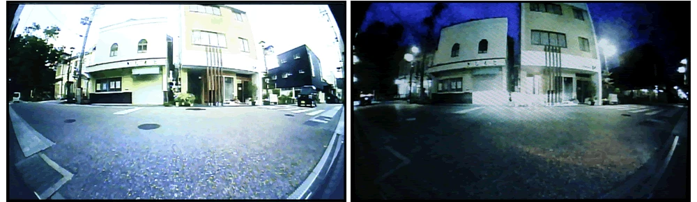 | 写真は実際にモニタへ映写した際の映像ですが、周囲の明るさ、車両ランプ類の輝度、位置、カメラ装着位置やご使用のモニタにより見え方が異なる場合があります。 | |||||||||||||||||||||||||||||