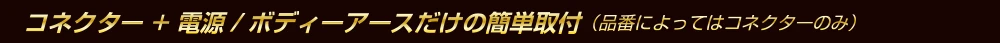 ●コネクター+電源+ボディアースで装着完了。 (※品番によってはコネクターのみ) ●消費電流をおさえた省エネ設計。 ●OFF機能搭載。 (※SDL-CT03・04・05は除く) |
