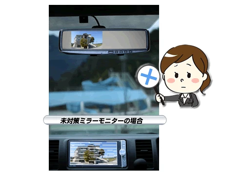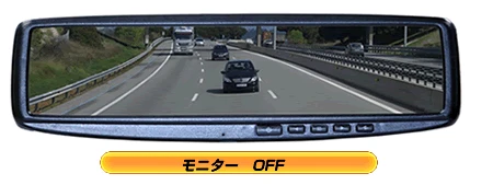 モニターOFF時には全面がミラーとなり、後方の視界をしっかりと確保出来ます。 |