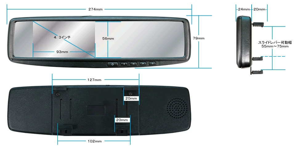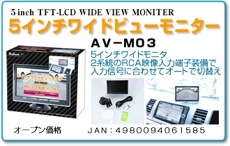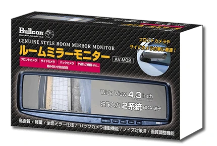 ルームミラーモニター(AV-M02)は、4.3インチLCD液晶ワイドモニターを内蔵。