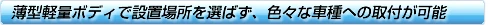 地デジチューナーやGPS受信等、車載機器への影響を最小限に抑えるノイズ対策により、多くの市販モニターで発生するノイズ問題をクリア。 |